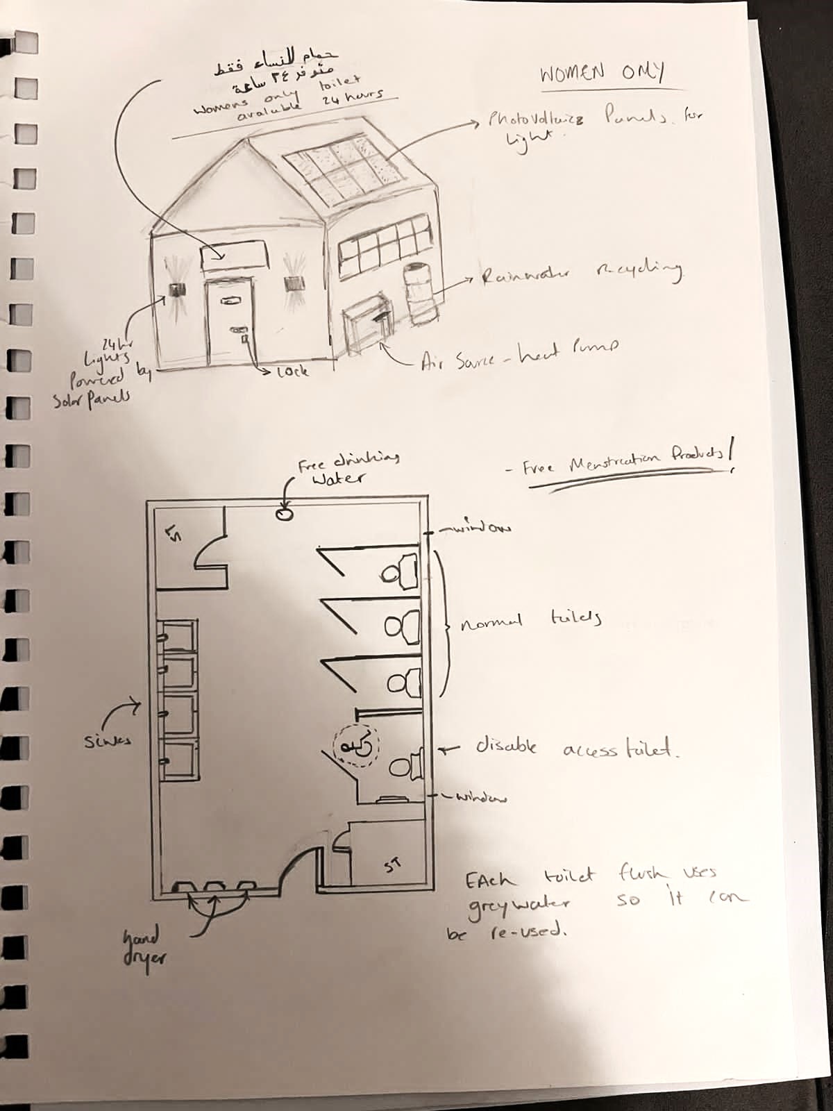 The students’ architectural design for the mobile latrine showcases their thoughtful consideration of various crucial aspects, ensuring a well-rounded and user-centric solution.
